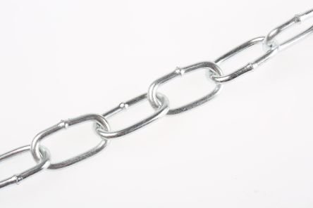 Reliable 50 kg load-rated zinc plated steel chain in 10m length, versatile for industrial applications.